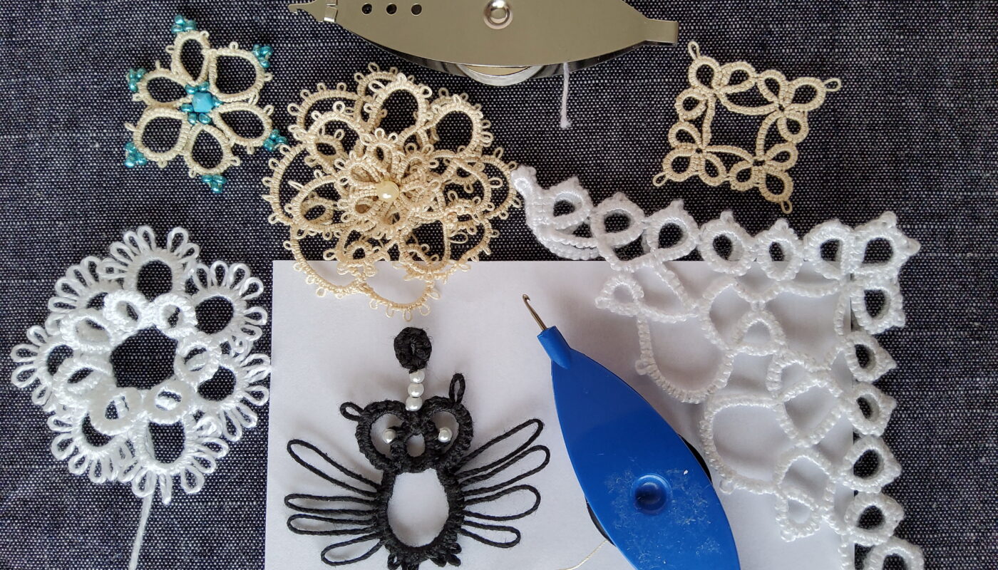La frivolité peut être exécutée à l’aiguille ou à la navette. Personnellement, je ne connais que la technique à la navette et c’est donc ce que je propose en initiation à l’Atelier.