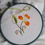 Lors de ce stage, vous broderez un motif simple de fleur avec une feuille qui vous permettront de comprendre comment placer les points en passé empiétant avec avoir effectué un serti, comment gérer les inclinaisons sur trois formes différentes.